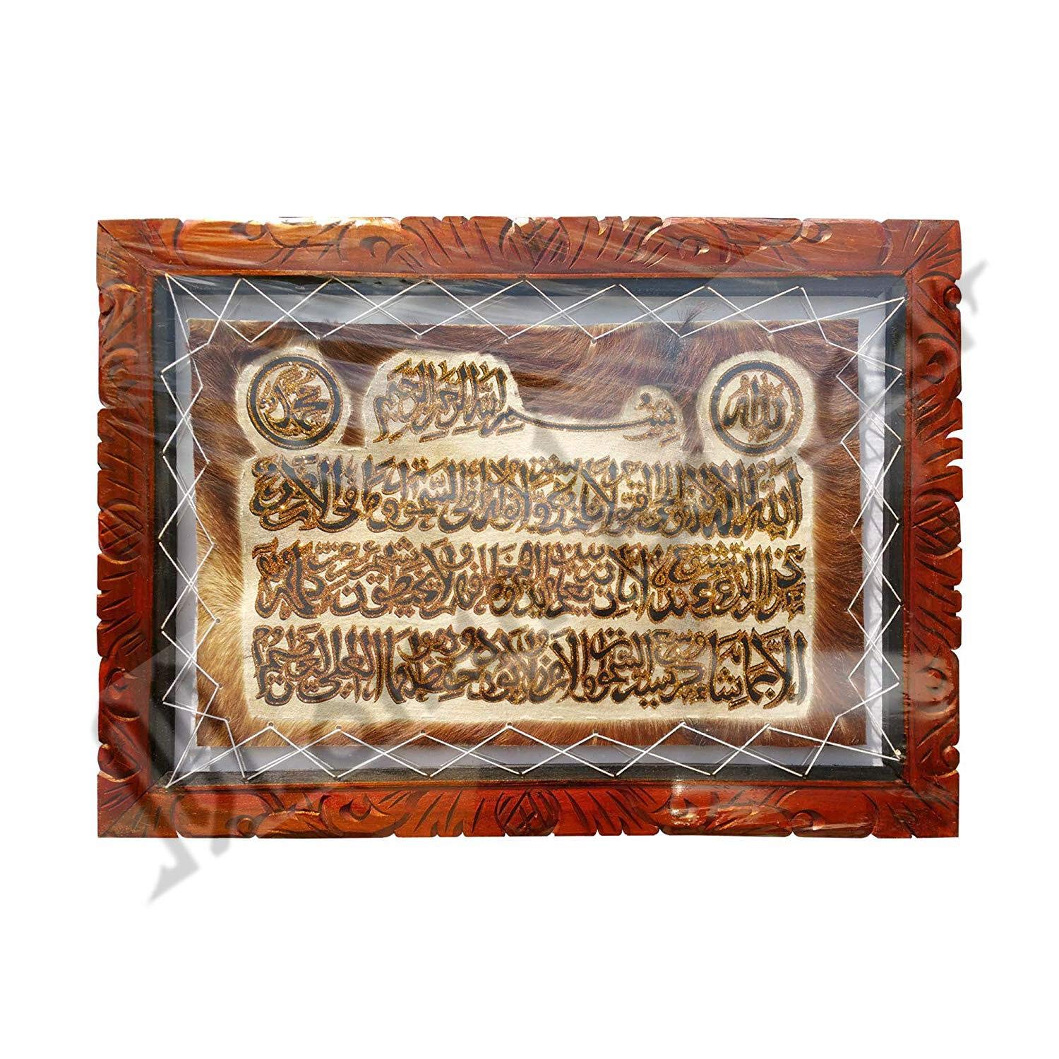 Goat Skin Calligraphy Frame Islamic TUGRA AYAT AL KURSI Islamic Wall Frame Islamic Decor Item 17.5INCH * 13.5 INCH