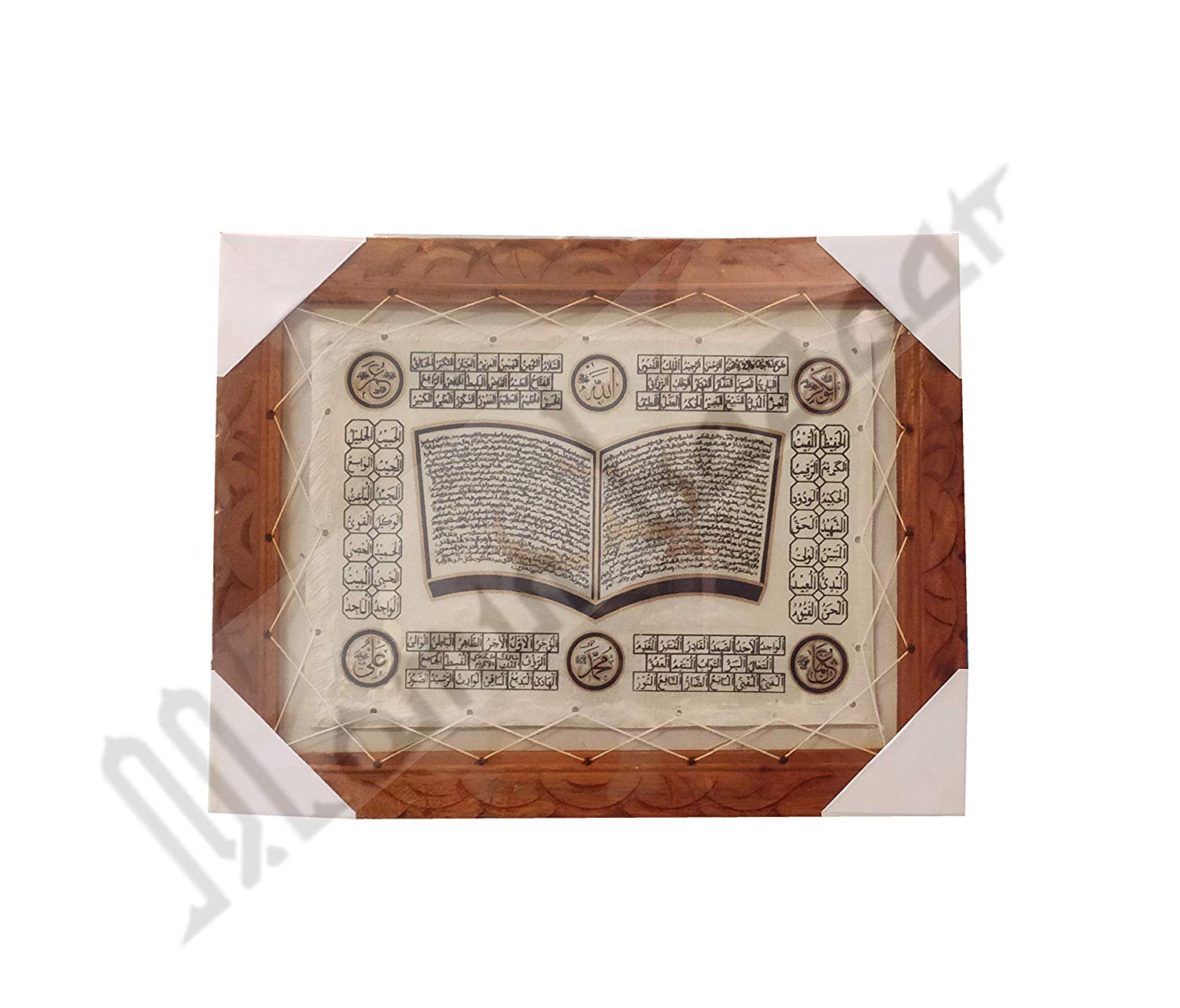 Goat Skin Calligraphy Frame Islamic TUGRA SURAH E YASEEN & NAMES OF ALLAH Islamic Wall Frame Islamic Decor Item 17.5INCH * 13.5 INCH