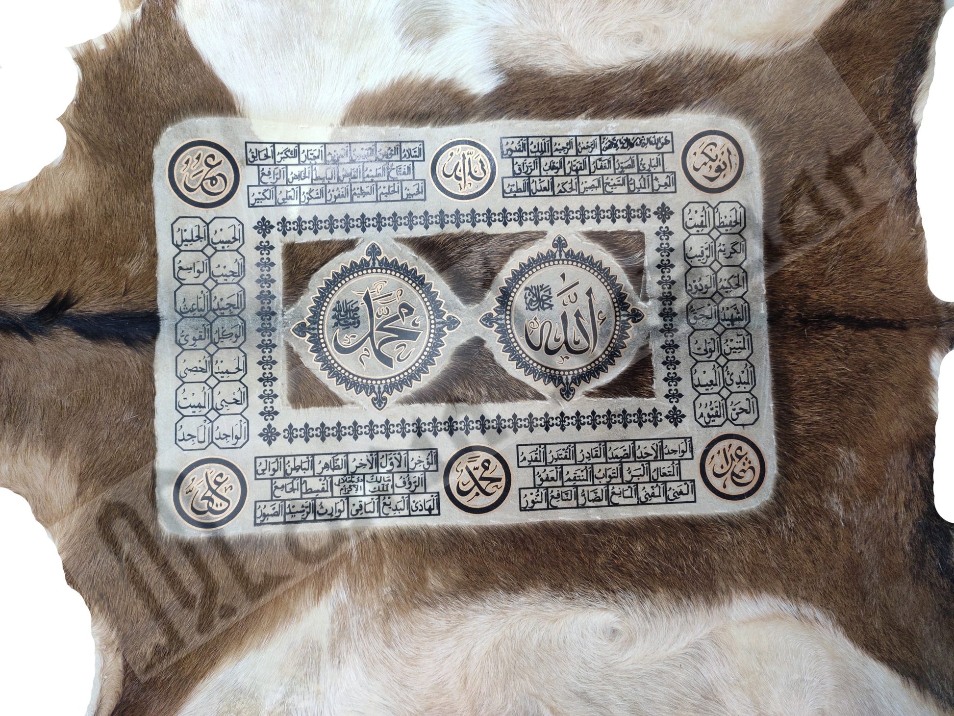 Goat Skin Calligraphy Islamic ALLAH MOHAMMAD (saw) & 99 NAME OF ALLAH Islamic Decor Item 38 INCH * 19 INCH