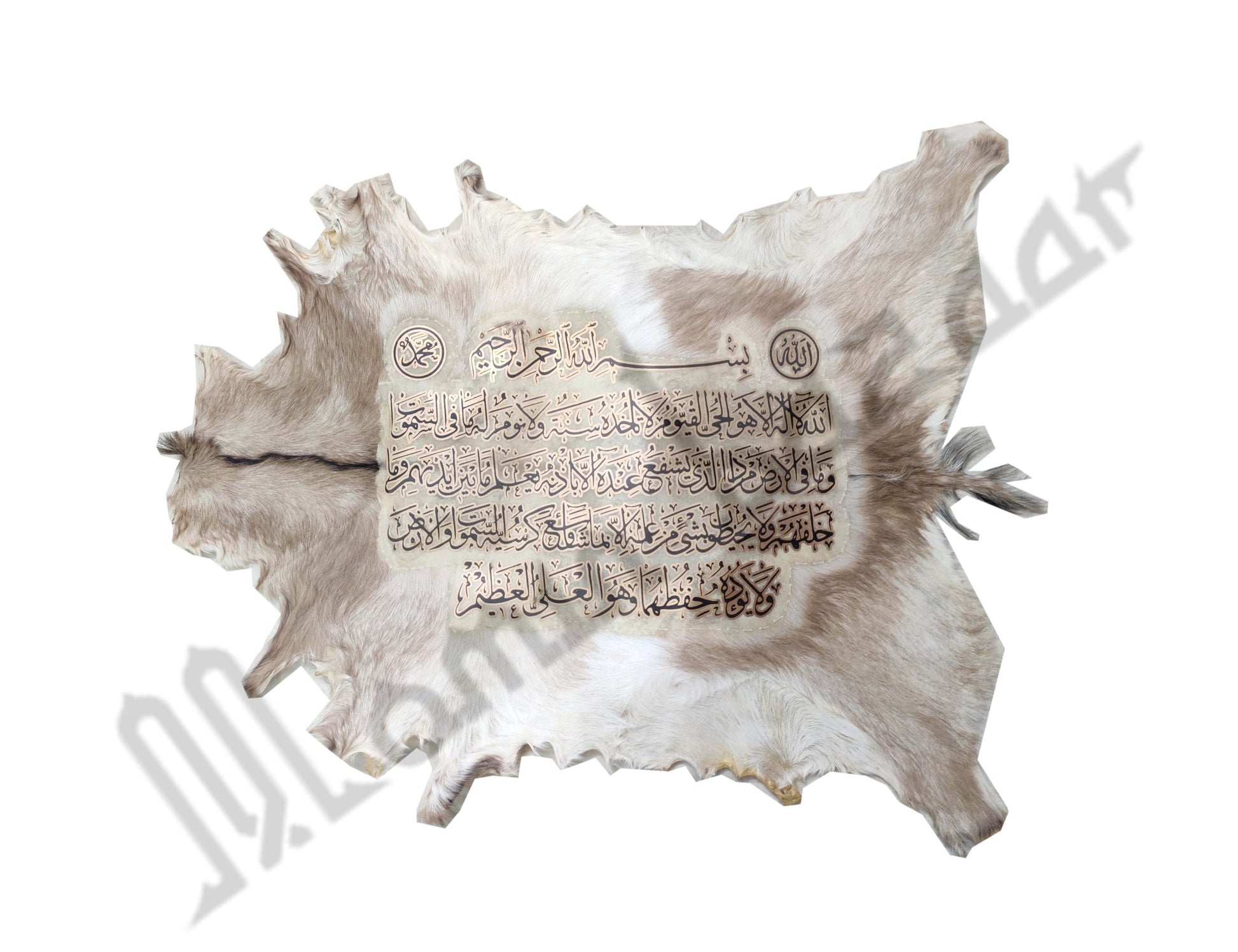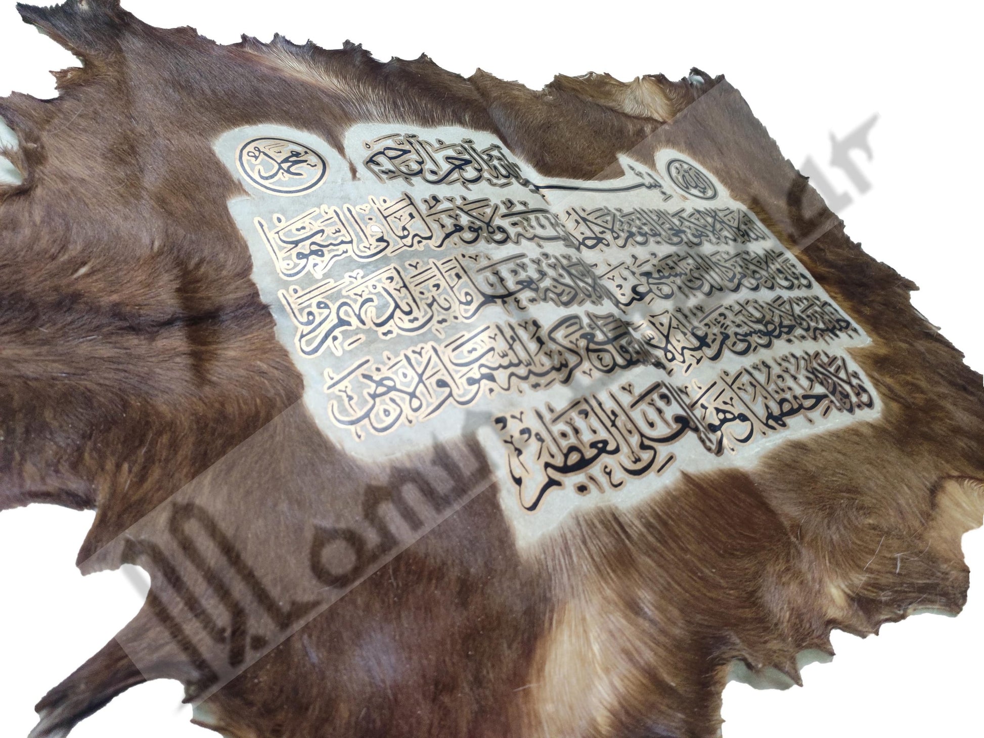 Goat Skin Calligraphy Islamic TUGRA AYAT AL KURSI Islamic Decor Item 38 INCH * 19 INCH