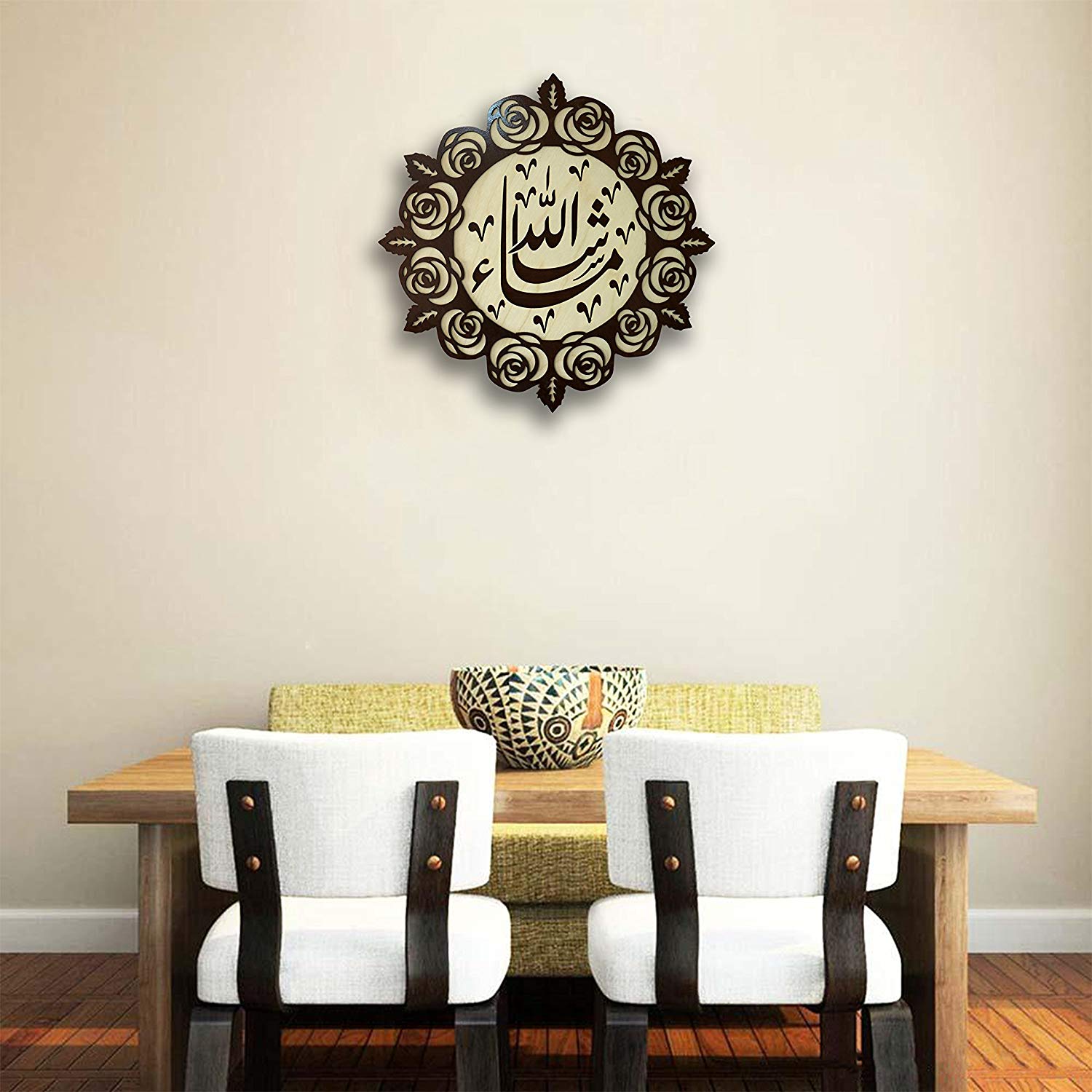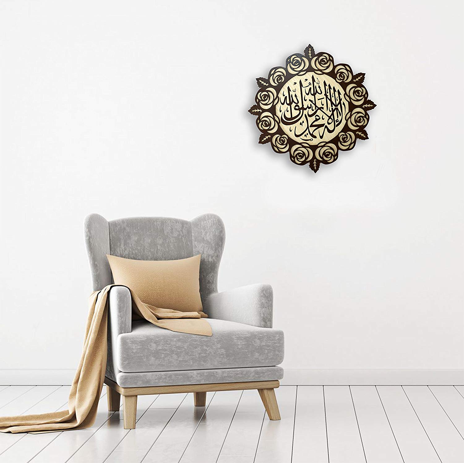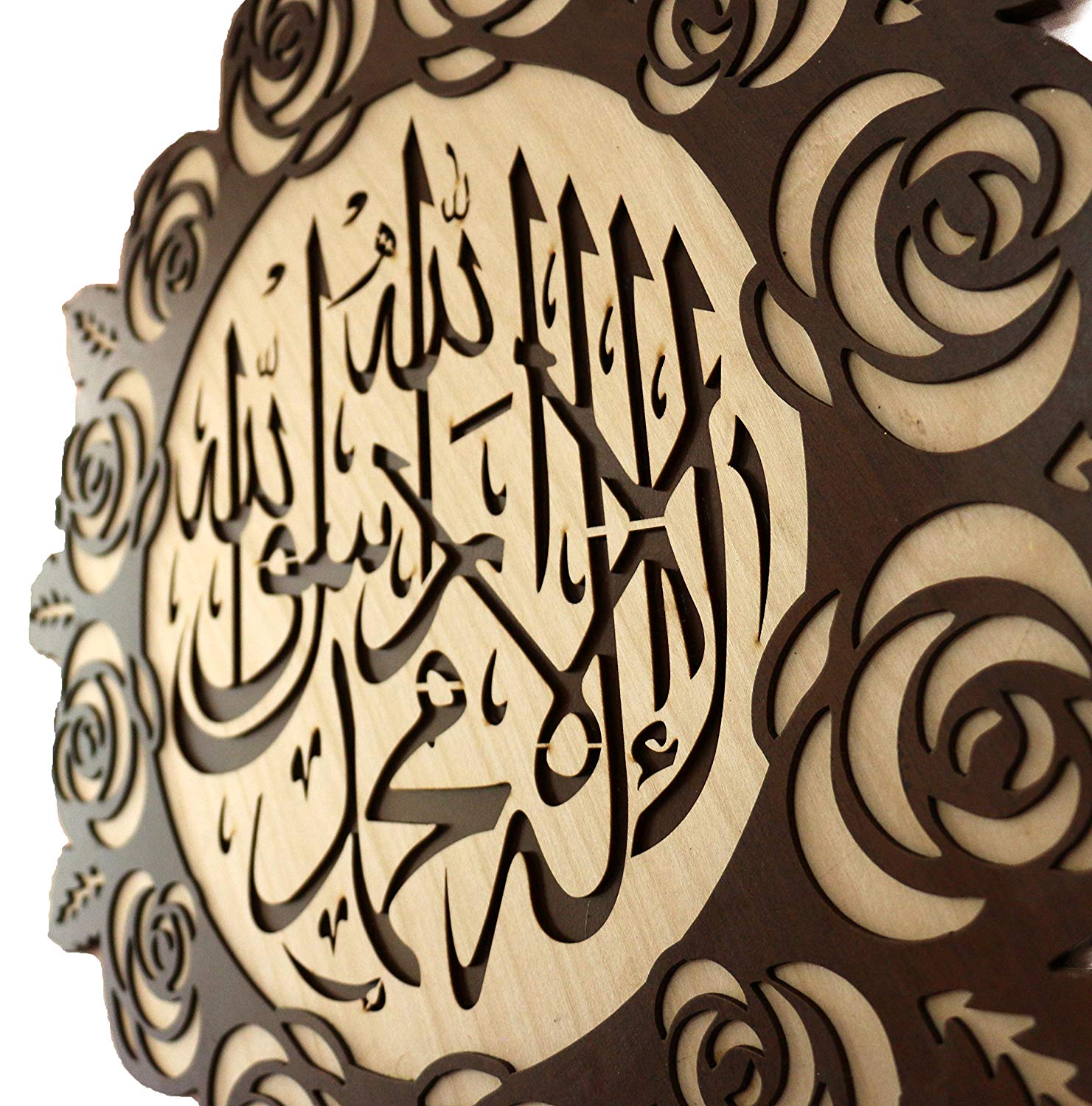 Islamic wall frame Wooden Home Decor Wall Hanging MASHAALLAH| La Illa Allah Muhammad Rasul Allah (Calligraphy) “لا إله إلا الله محمد رسول الله” “There is no deity besides Allah. Muhammad is the messenger of Allah 22 * 22 inch