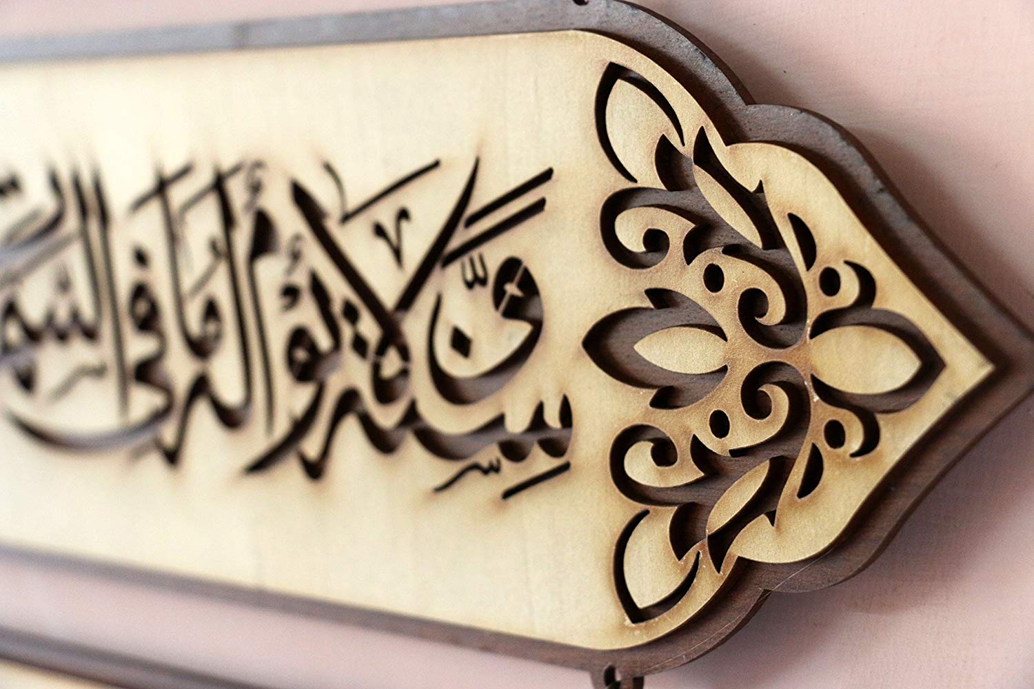 MOMIN BAZAAR Islamic Wooden Home Decor Wall Hanging Chained Multi Step Ayat-AL-KURSI 34 * 19 inches