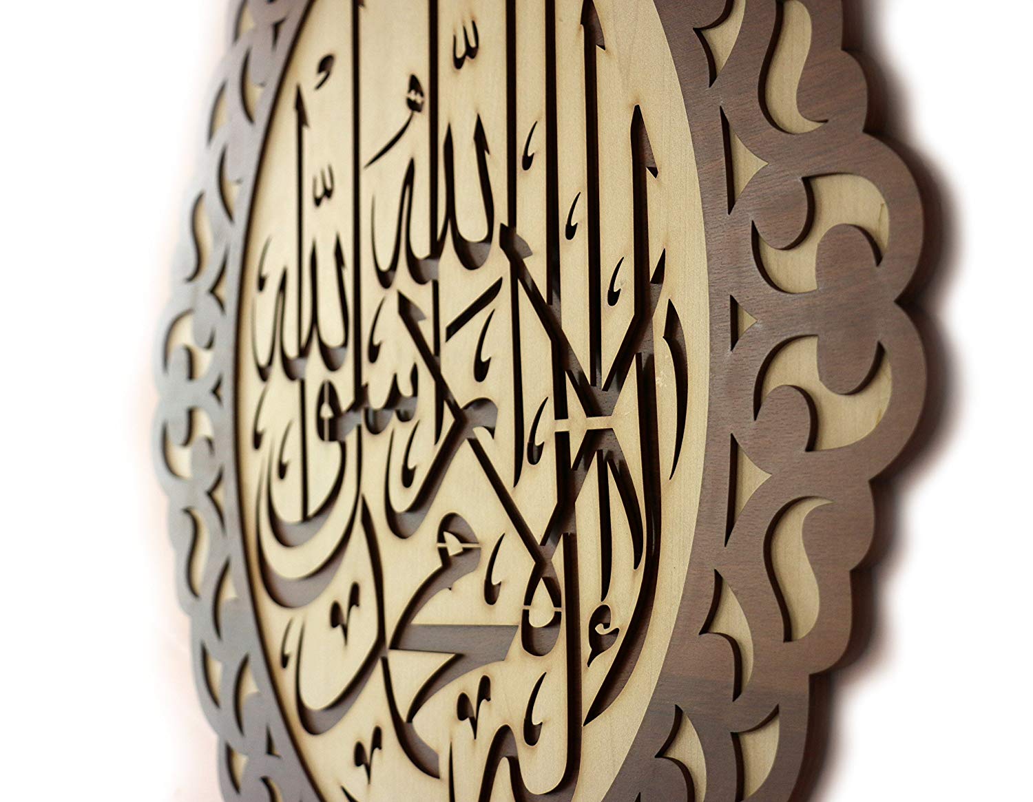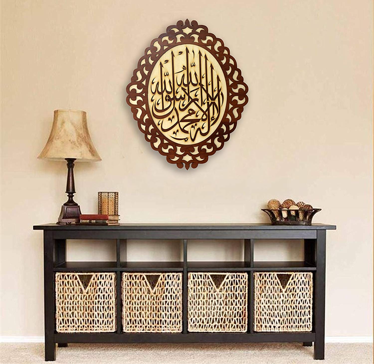 MOMIN BAZAAR Islamic Wooden Home Decor Wall Hanging La Illa Allah Muhammad Rasul Allah (Calligraphy) “لا إله إلا الله محمد رسول الله” “There is no deity besides Allah. Muhammad is the messenger of Allah | MASHALLAH 23 * 18 inches