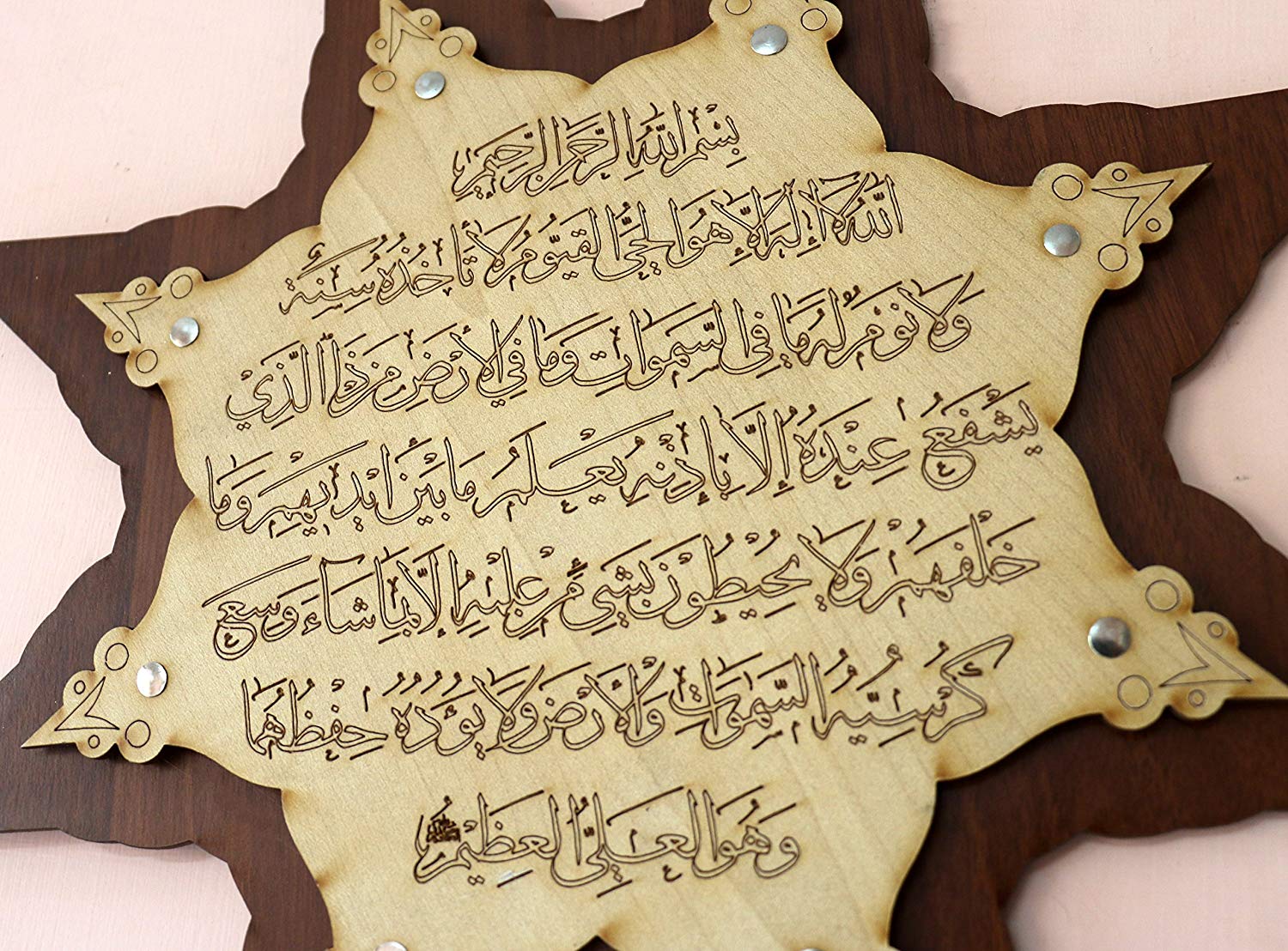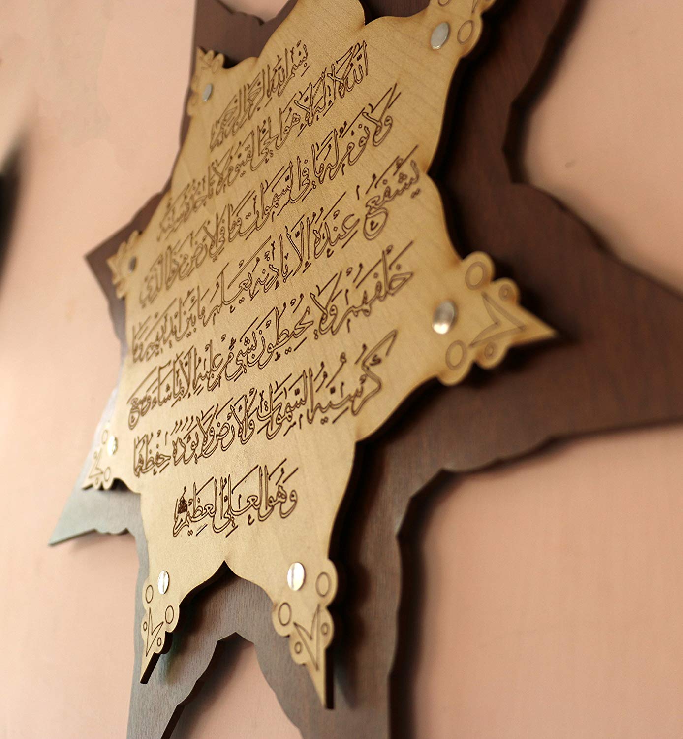 MOMIN BAZAAR Islamic Wooden Home Decor Wall Hanging Star Ayat-AL-KURSI 14 * 14 inches