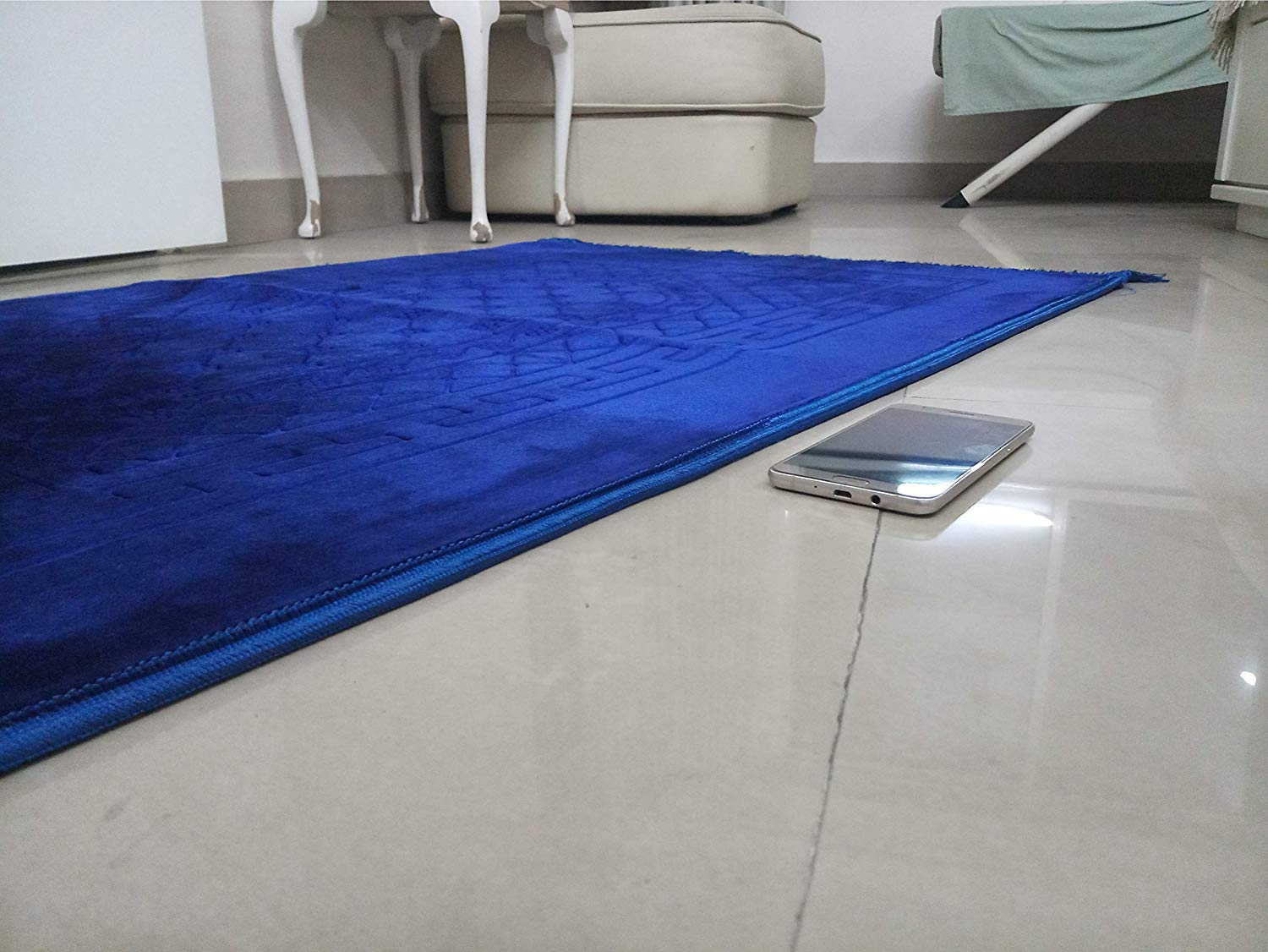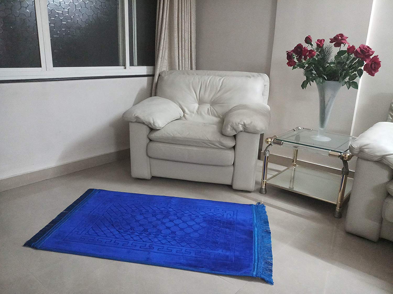 Janamaz Momin Bazaar High Quality Islamic Muslim Janamaz Musallah Prayer Mat Rug JUMBO VELVET BLUE