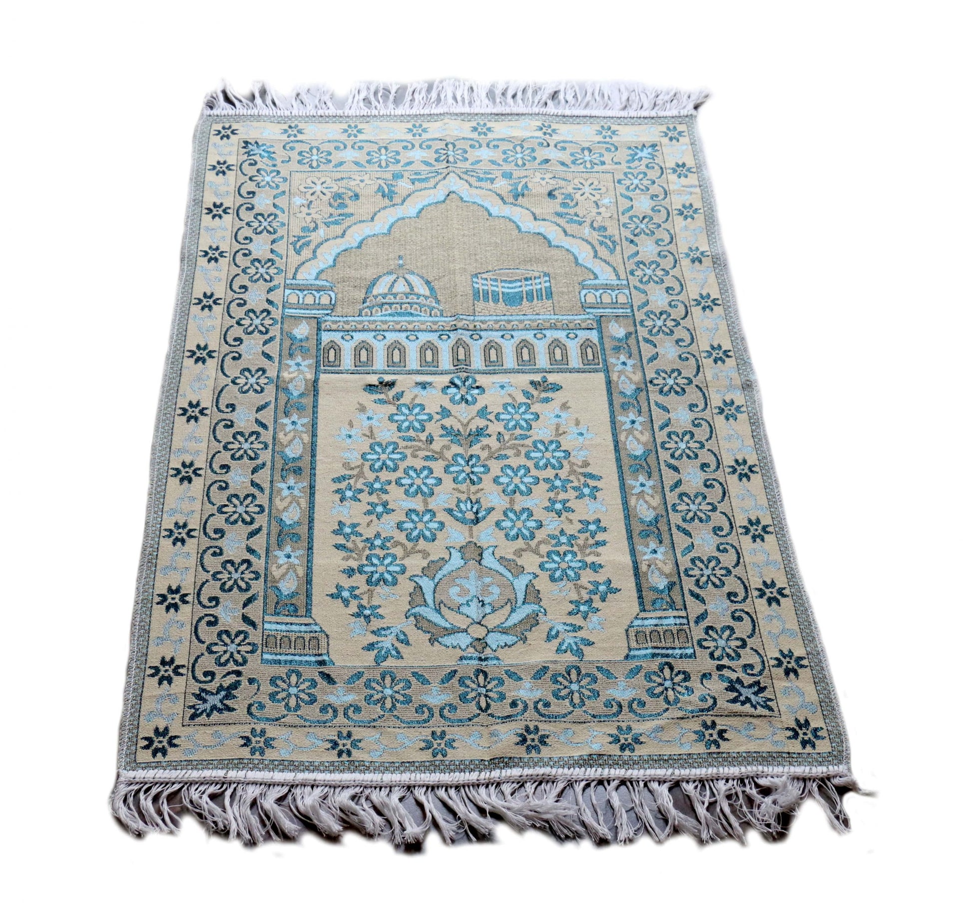 MOMIN BAZAAR Cotton Islamic Muslim Janamaz Musallah Prayer Mat Rug (Cyan Mecca)