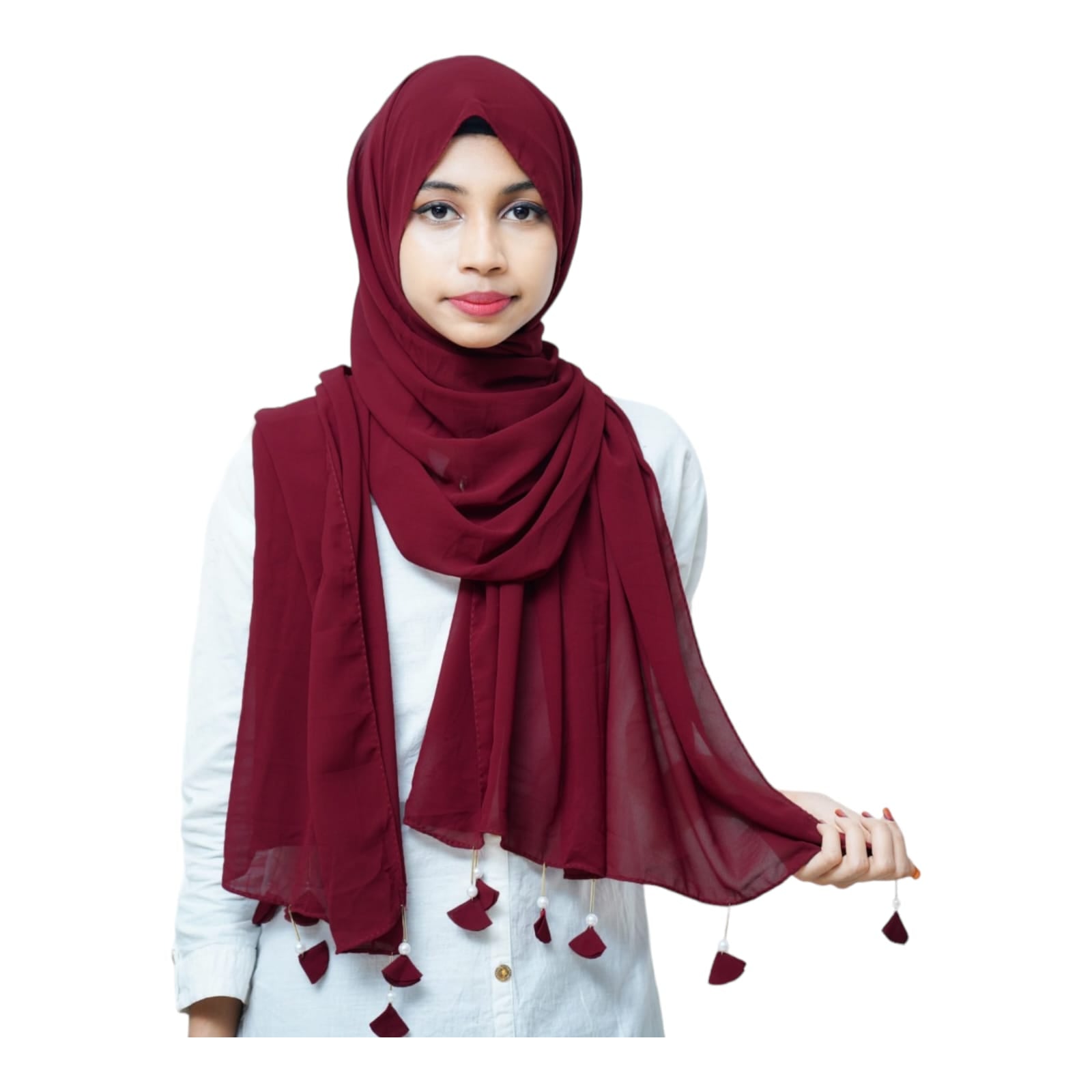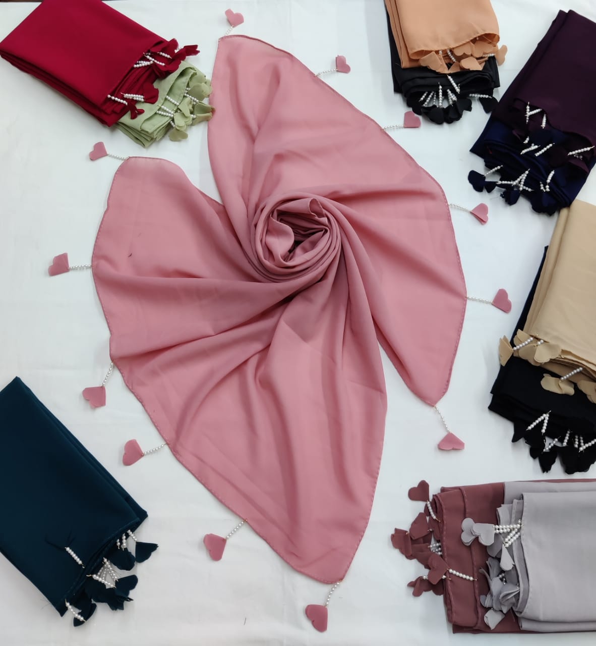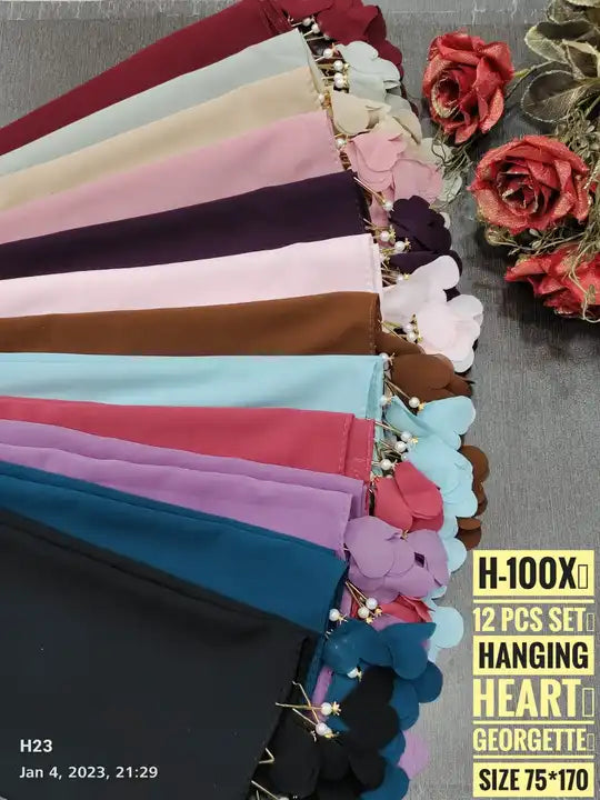PREMIUM MALAYSIAN GEORGETTE HEART PEARL LATKAN HIJAB FOR WOMEN 180 CM BY 80 CM