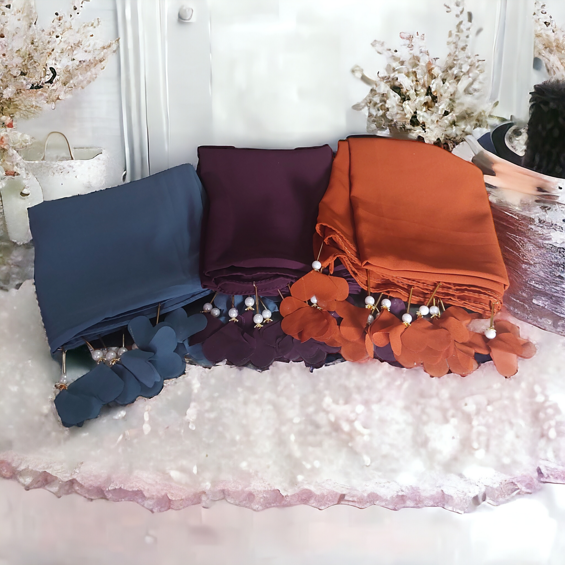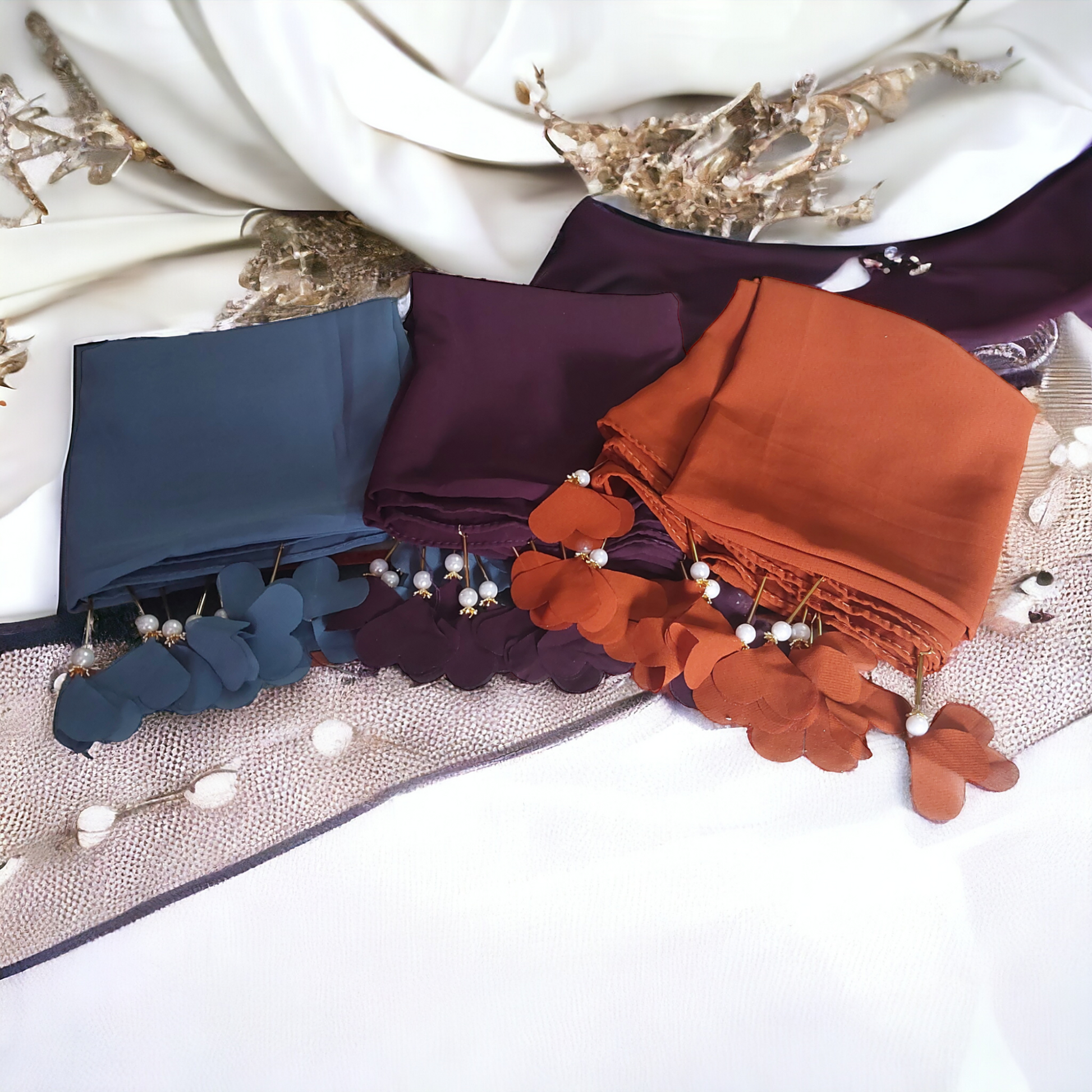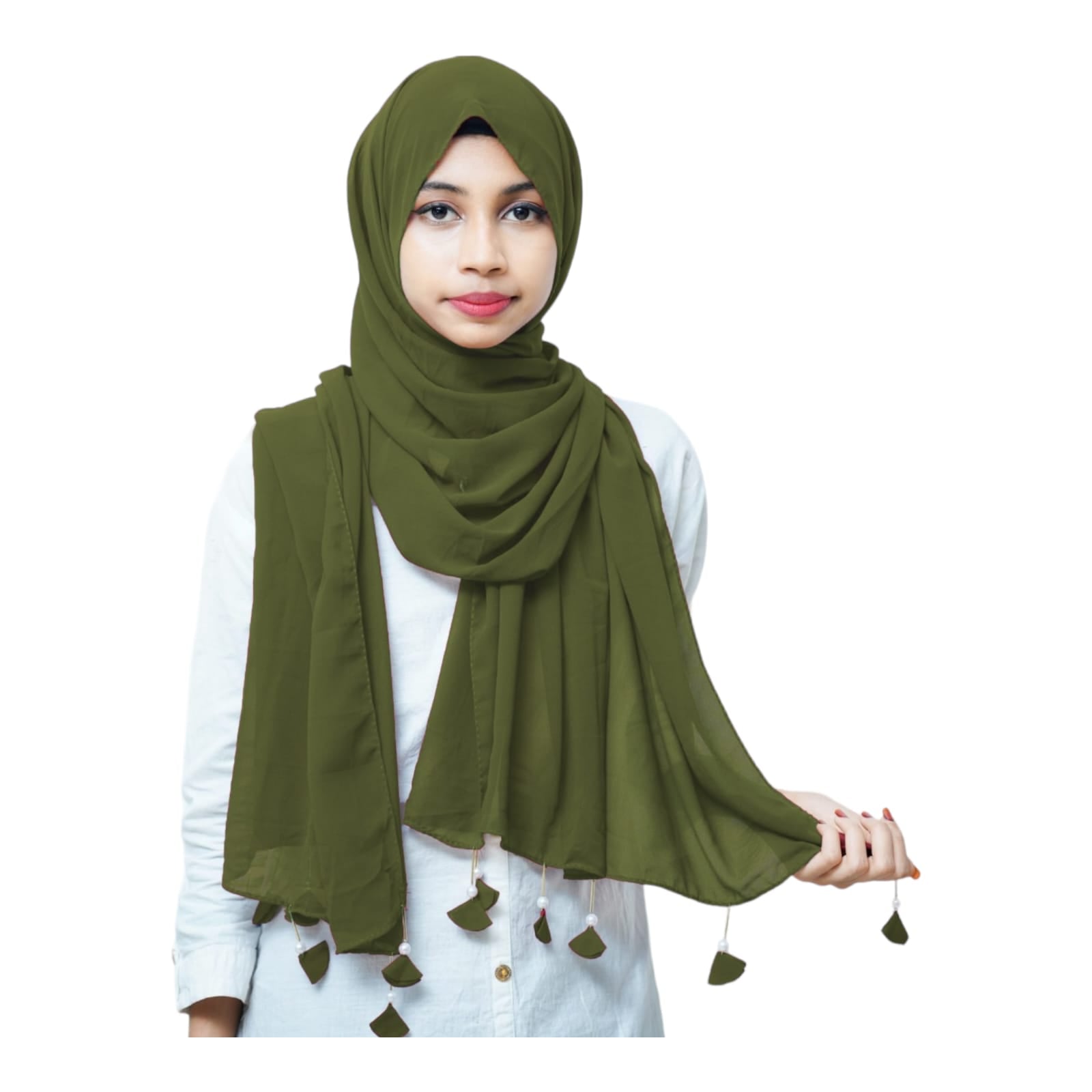 PREMIUM MALAYSIAN GEORGETTE HEART PEARL LATKAN HIJAB FOR WOMEN 180 CM BY 80 CM