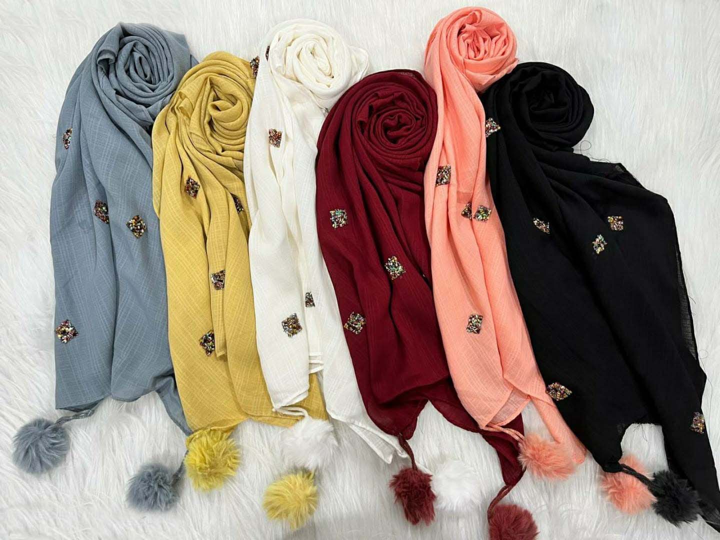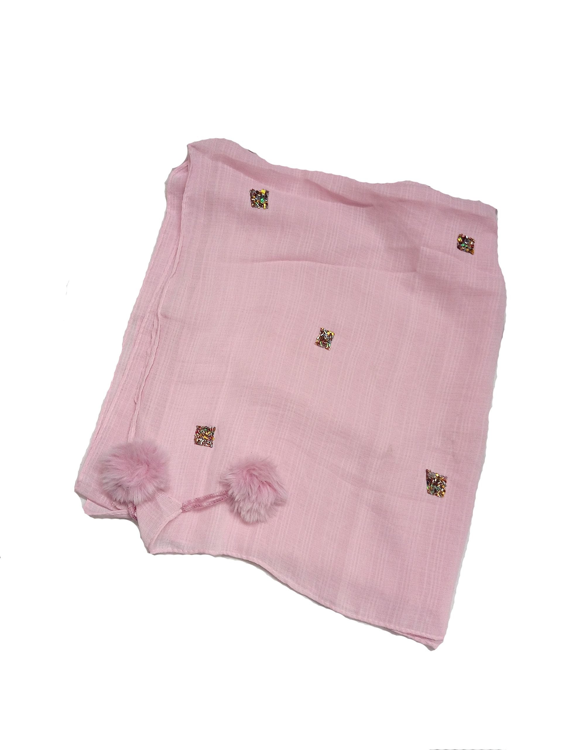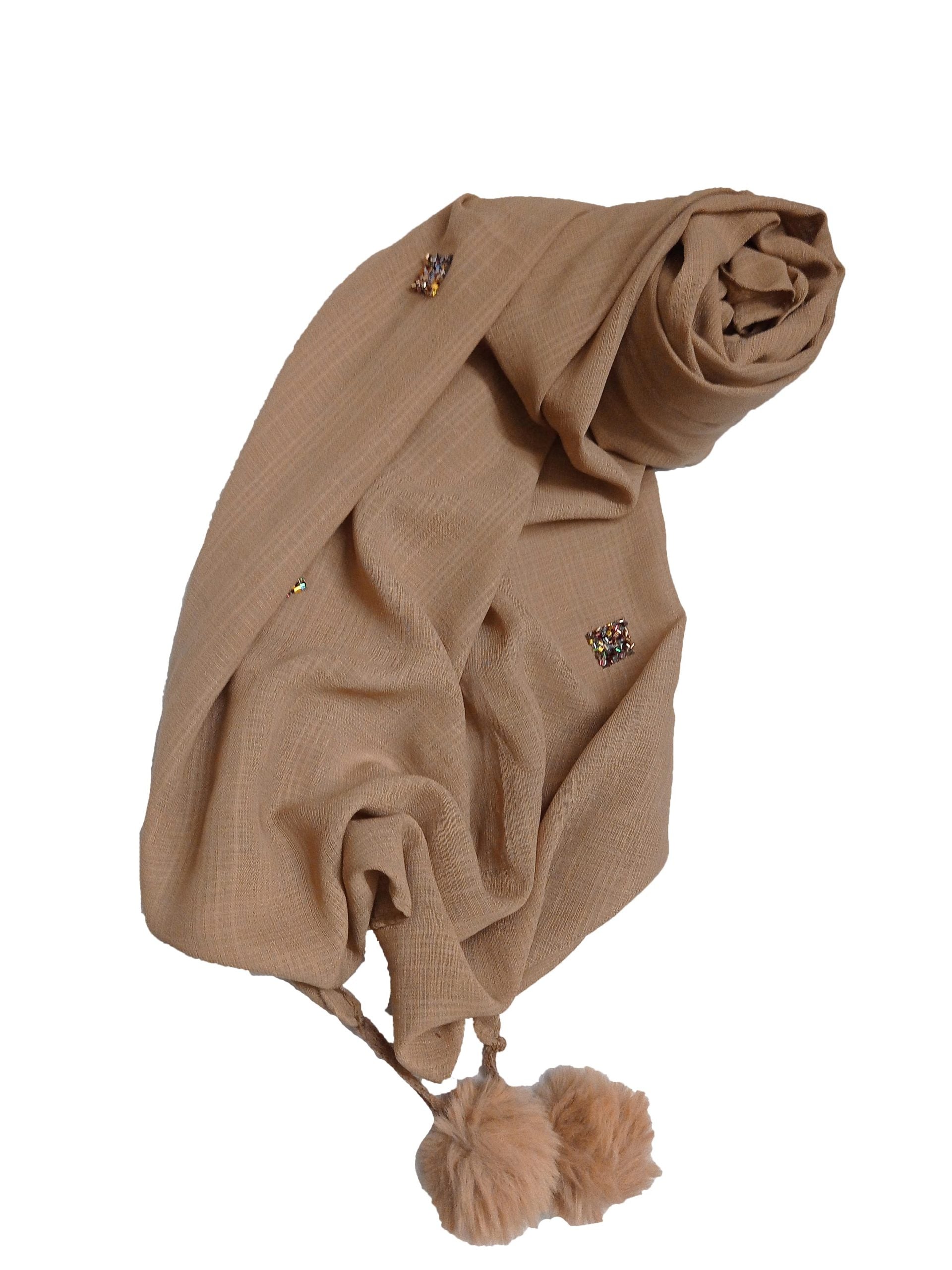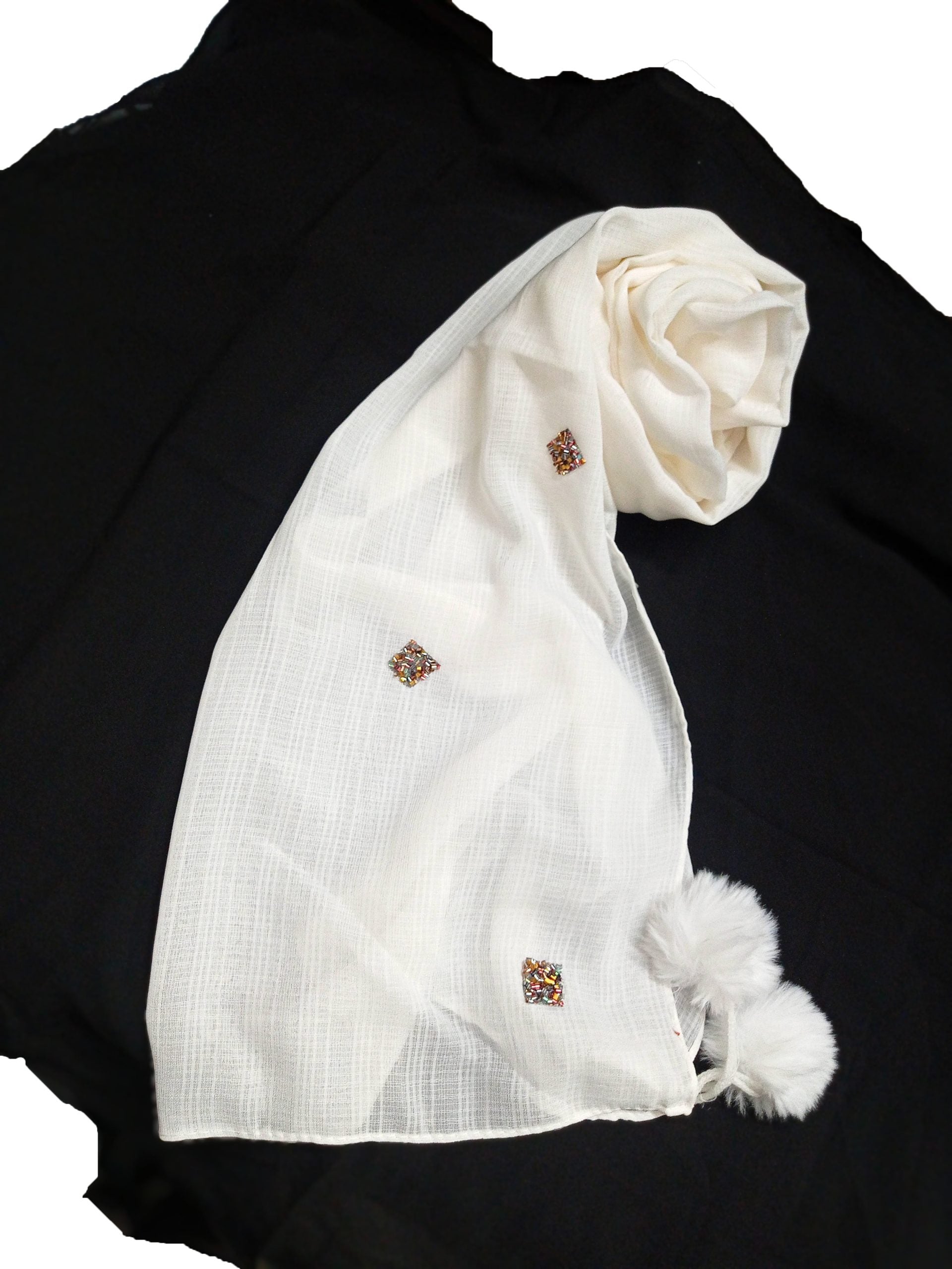 RABBIT FUR BALL COTTON HIJAB WITH LACE
