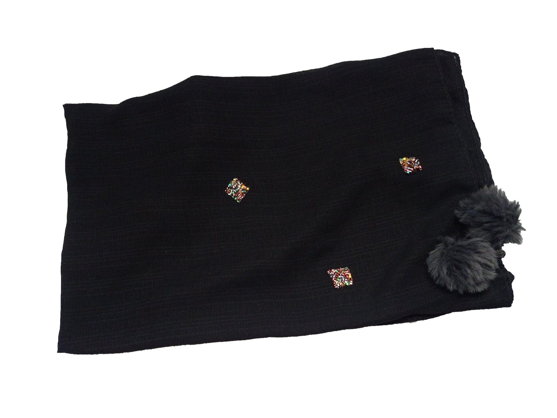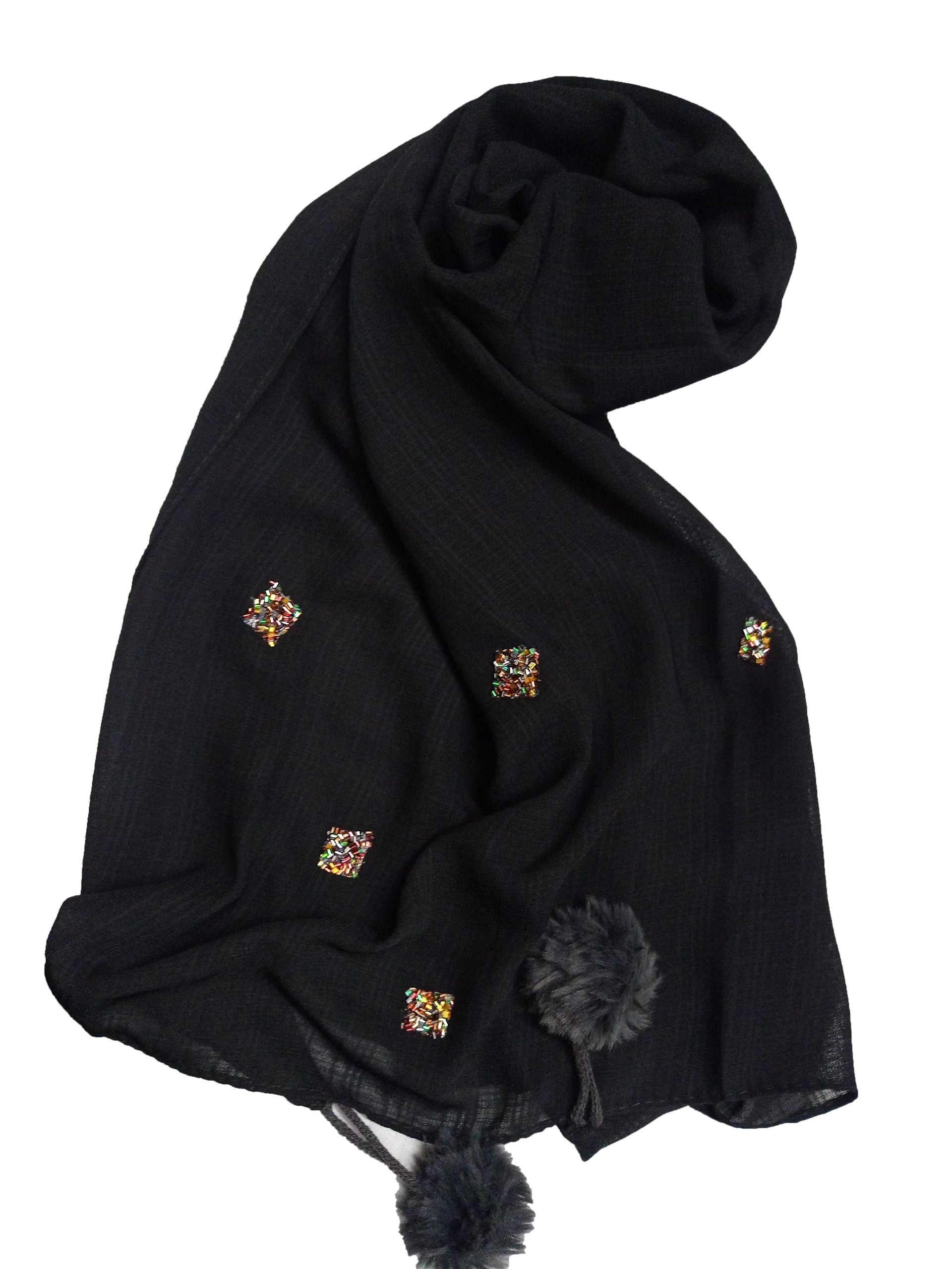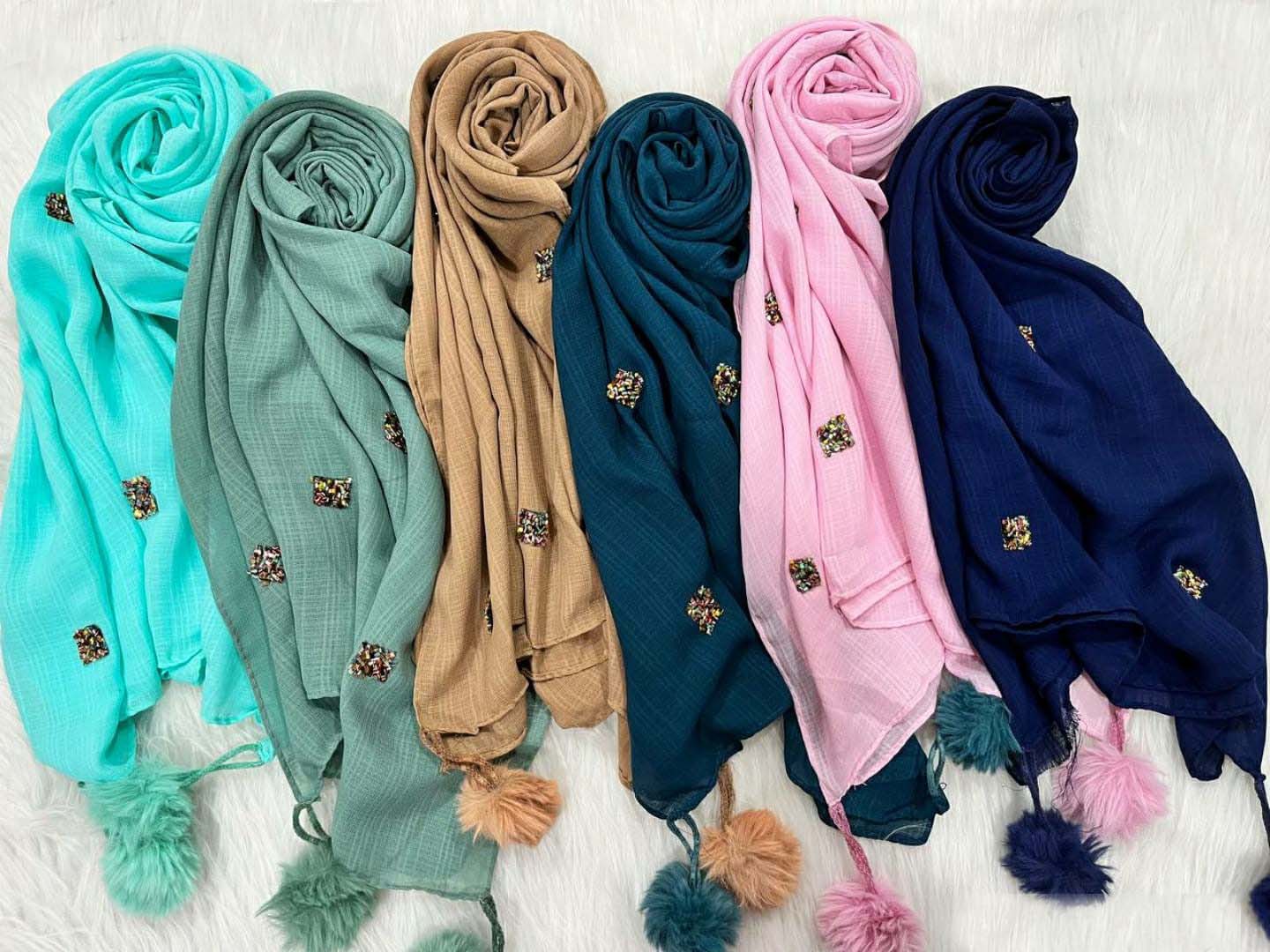 RABBIT FUR BALL COTTON HIJAB WITH LACE