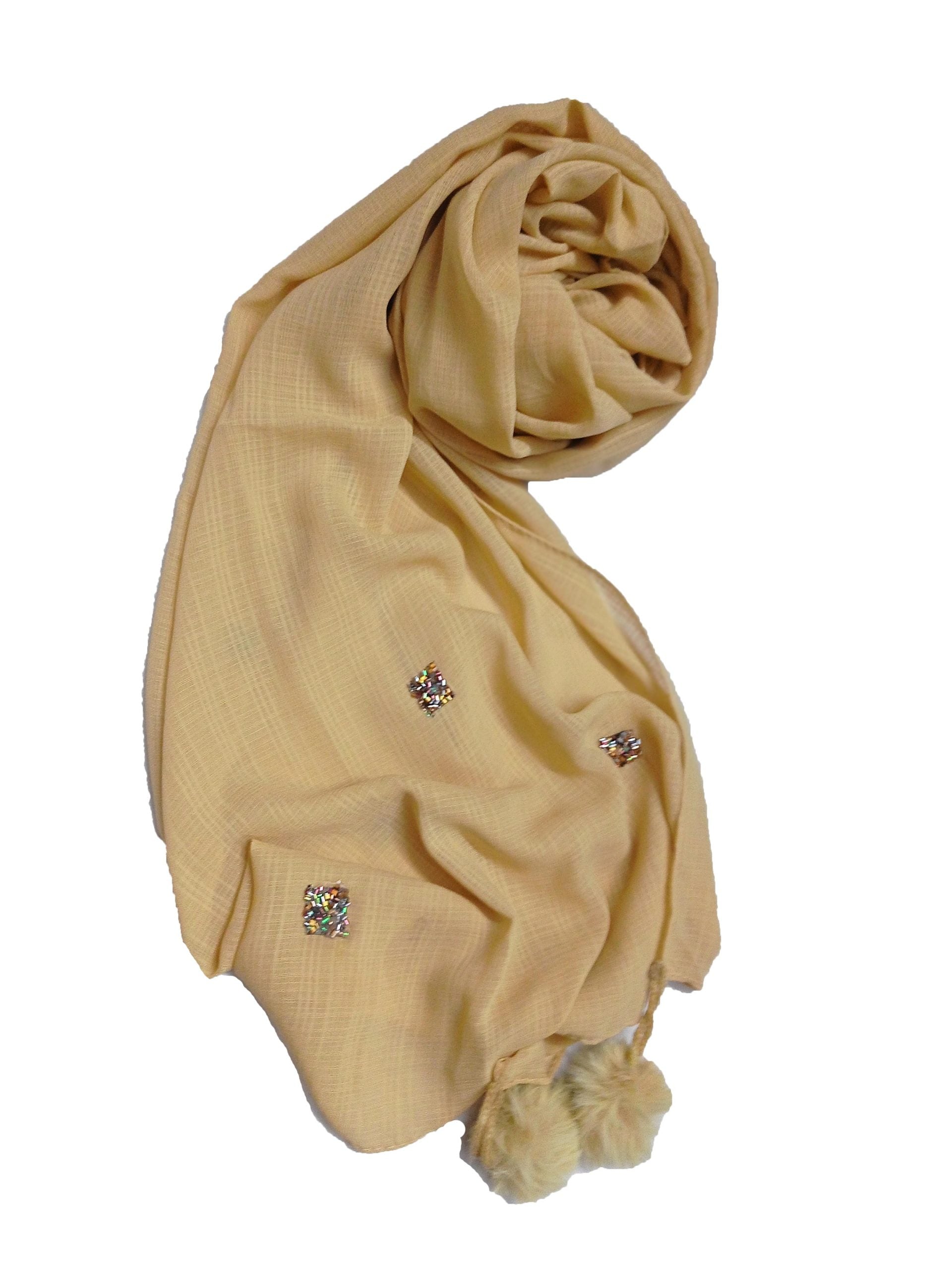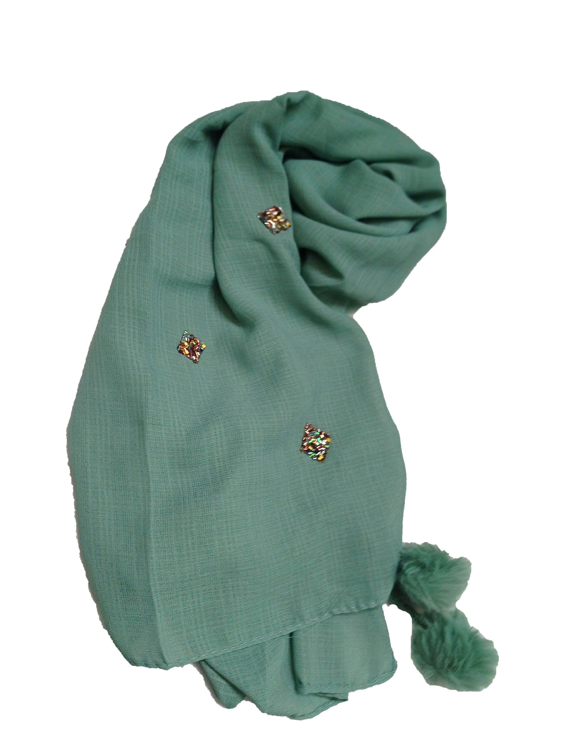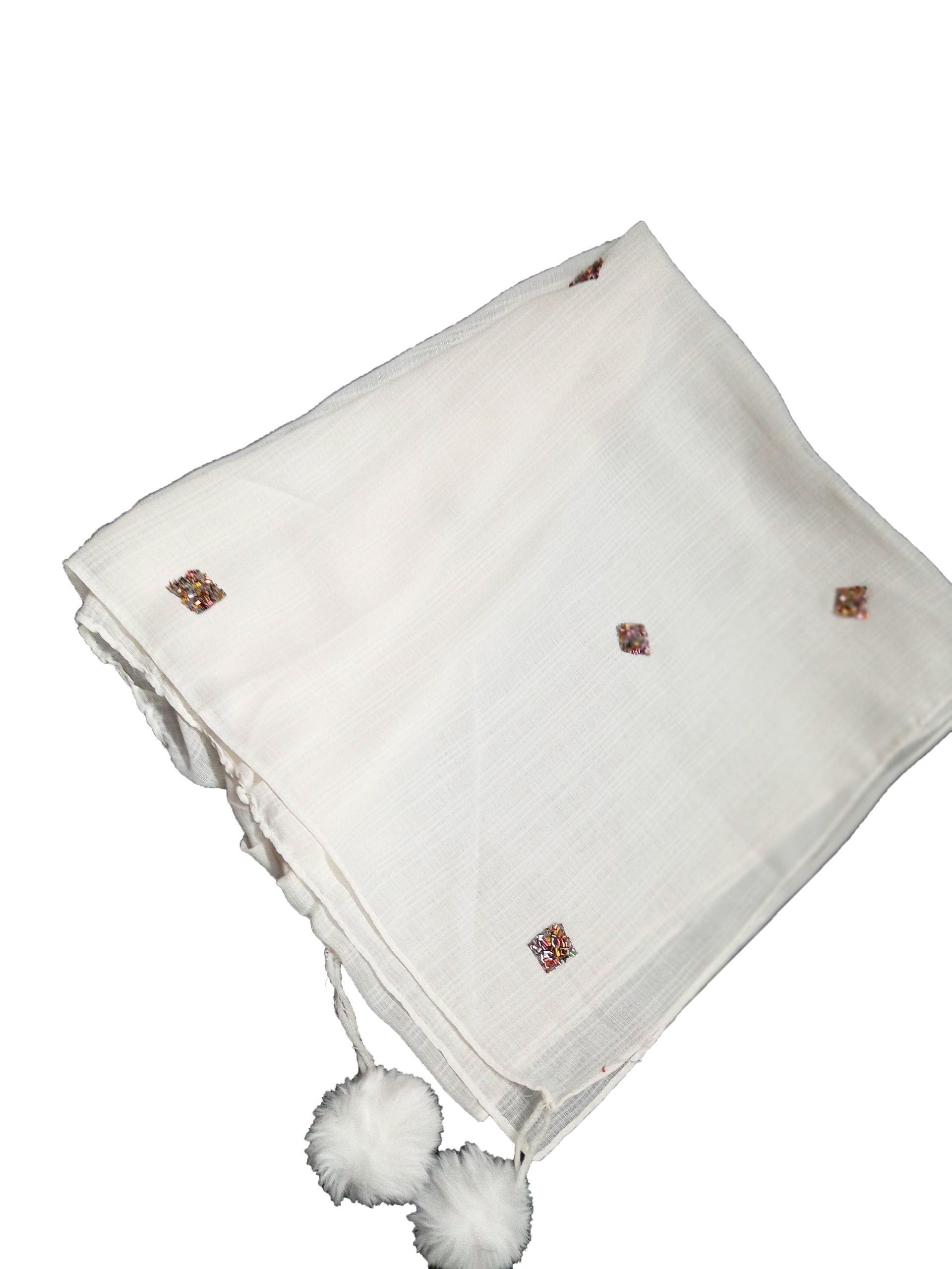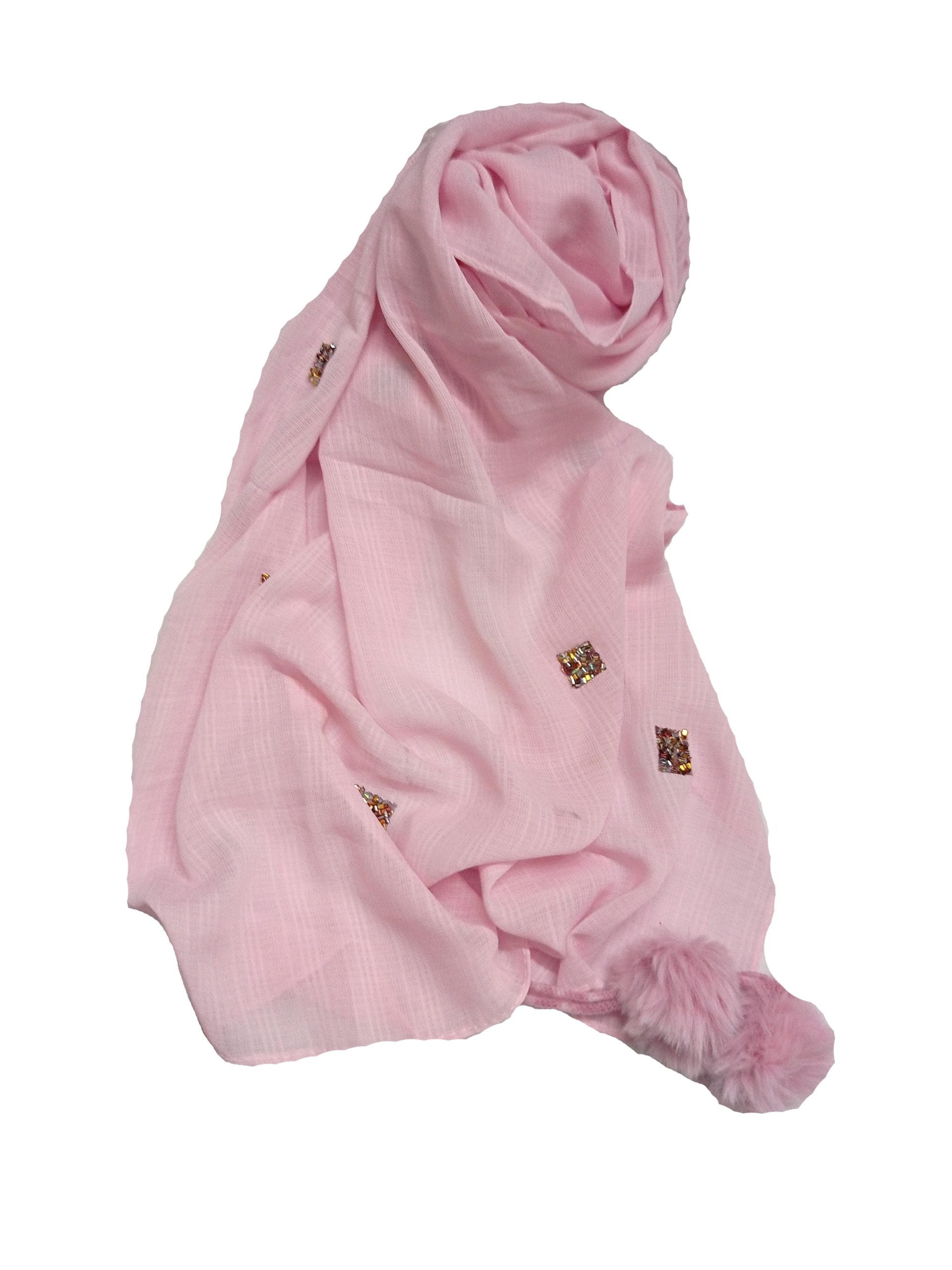RABBIT FUR BALL COTTON HIJAB WITH LACE