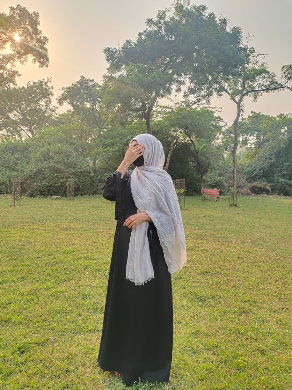 A hijab a veil worn by the Muslim women. It is a kind of covering on the head and can be extended to the chest part. The covering needs to adhere to the Islamic dressing which usually covers the head and chest, and sometimes the face.